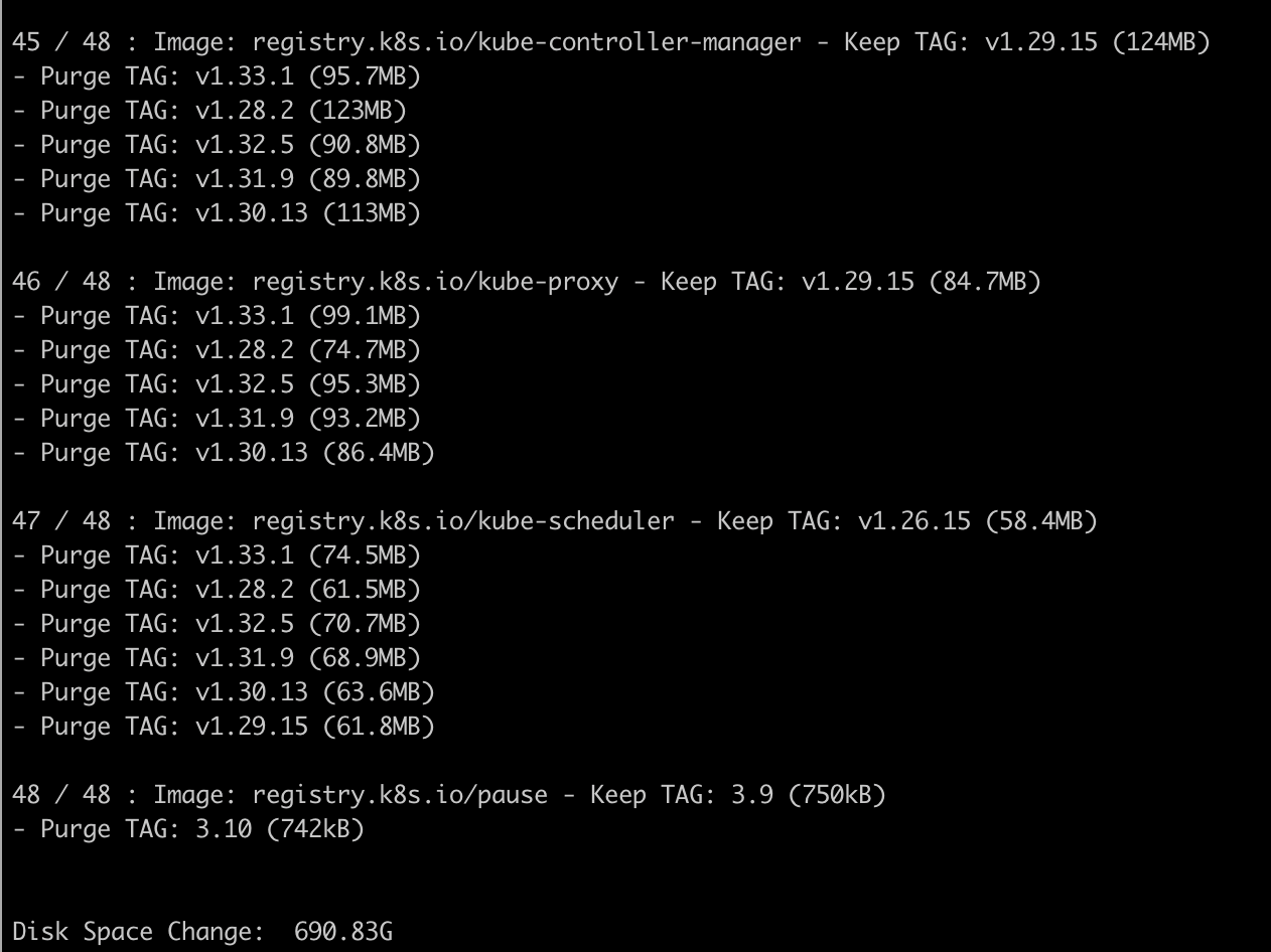 # 이후 아래 명령어를 통해 삭제될 이미지 목록을 확인합니다.